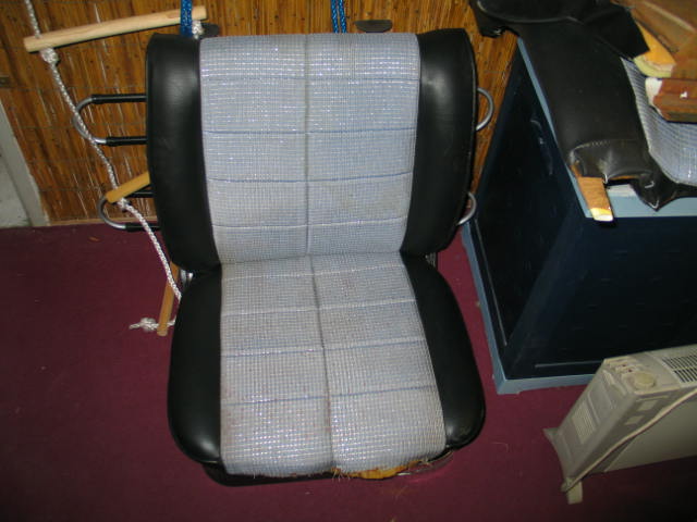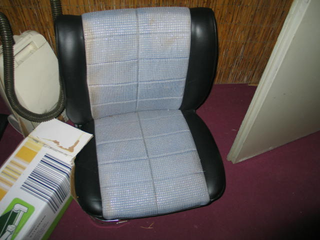 Teile wurden vor einigen Jahren mit neuem Kunstleder bezogen mit blaugrauer Stoffeinlage (siehe Fotos).