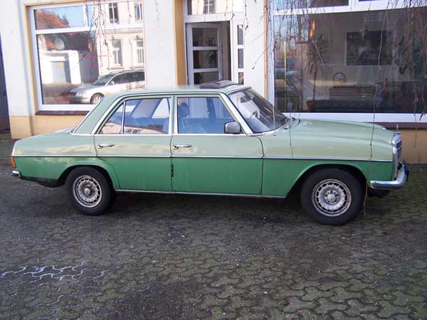 ursprünglich ein 230.6 der dann erstmal auf 3.0 D umgerüstet wurde mit Lenkradautomatik, dadurch vorne mit 3 Sitzplätzen. Und schon das moderne Vorglühen mit dem Zündschlüssel, nicht so schön wie bei den anderen Modellen die an einen Bulldog Starter erinnern.