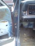 Sehr schön. Was ist denn da an der rechten A-Säule passiert? Und was steht da auch der linken Sitztraverse? Hat das was zu sagen? Ich glaube, an dem Auto kann man sich noch viele originale Details abkucken. Zum Beispiel: Bis wo wurde hinterm Grill mattschwarz lackiert. Oder das mattblau im Innenraum. Die abgetretenen Stellen an der linken A-Säule würde ich so lassen.