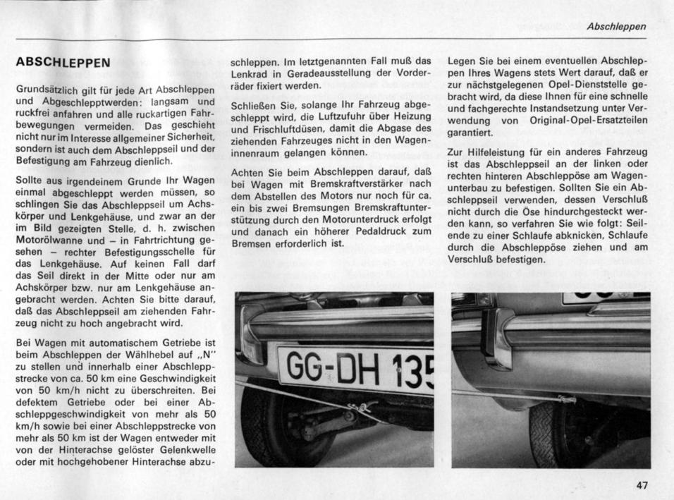 die hintere Abschleppöse würde ich bei keinem B-Kadett verwenden. sie ist nur mit 3 oder 4 punkten verschweisst und hält selbst in unangetastetem, nicht verrosteten Zustand den Belastungen nicht stand!