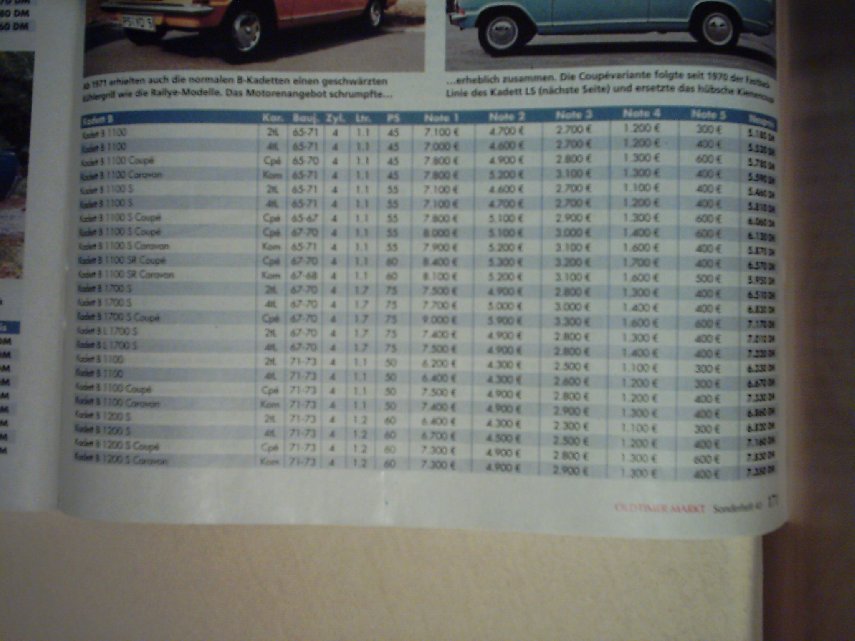2.Fall: ein Kadett im mittelmäßigen Zustand = Rost an den typischen Stellen aber nix durchgerostet, allgemein Note 2-3.