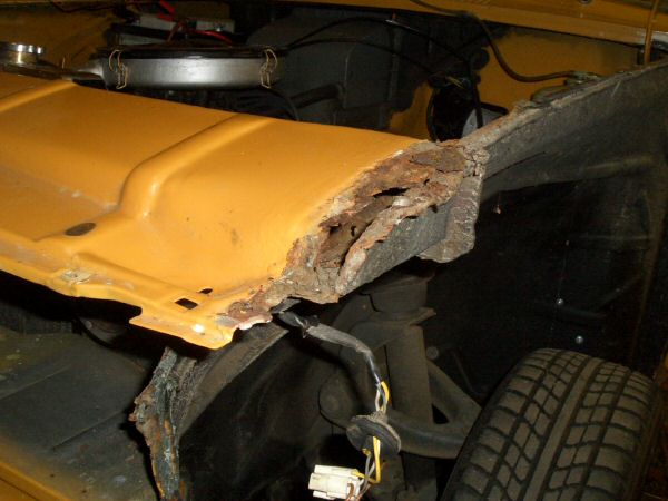 Wollte eigentlich nur meine Kotfl?gel ein wenig aufbereiten. Aber beim Abbauen sind diese schon auseinander gefallen. Die bestehen mehr aus Rost und Spachtel, als aus Blech. Und drunter wahr wie zu erwarten auch Rost, den ich dann direkt wegmache.