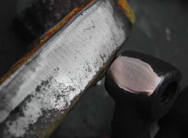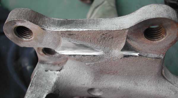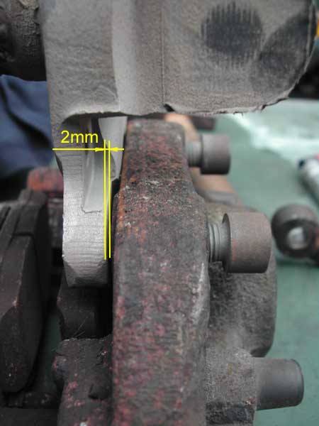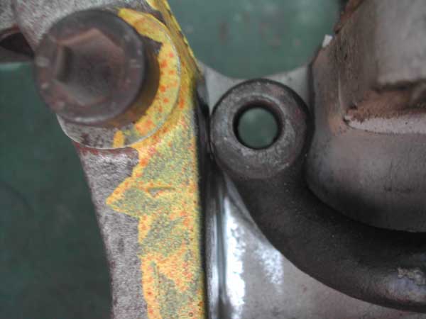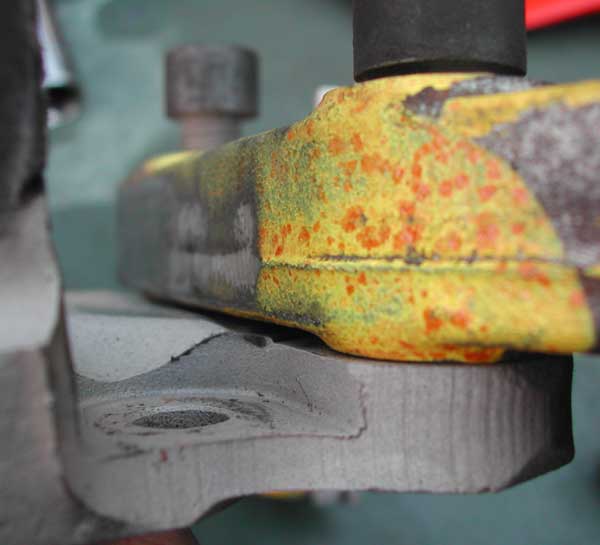Weiterhin musst Du am Achsschenkel zwischen den Befestigungslöchern für den Sattel Material abnehmen, weil der Sattel sonst nicht plan aufliegt.