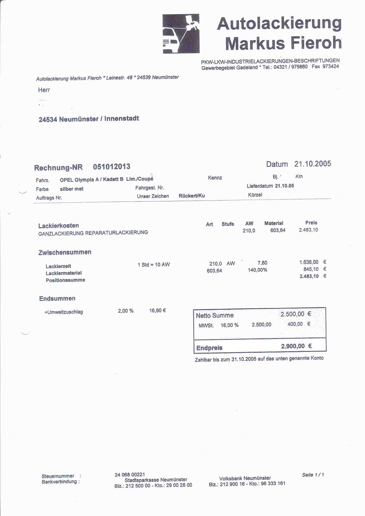 Du kannst das auch ohne Rechnung machen, was aber ein gutes Vertrauchen zum Lackierer braucht.