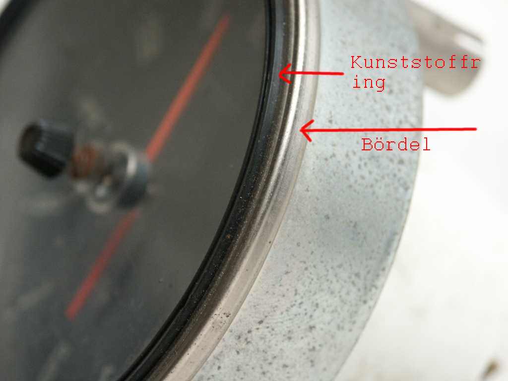 das Glas der Uhr ist doch, wie bei Zusatzinstrumenten üblich mit einem Bördelring befestigt.