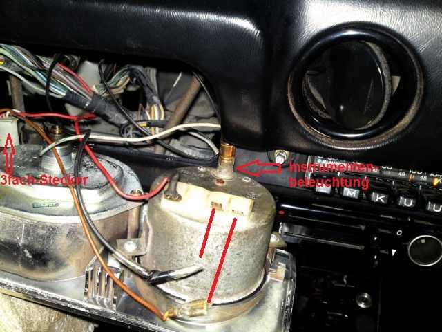 Ich hab jetzt die Instrumententafel ausgebaut und vom Drezahlmesser ein braunes Kabel ganz rechts und ein schwarzes in der Mitte abgezogen! Das rote dauerplus-Kabel links hab ich drangelassen und das Problem besteht immer noch?