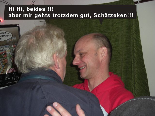 Bert und Manfred beim Austausch alter Schraubertips, z. Bsp. Bannanenschalen ins Getriebe, wenn es Krach macht!!!
