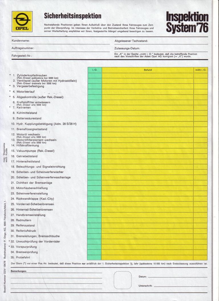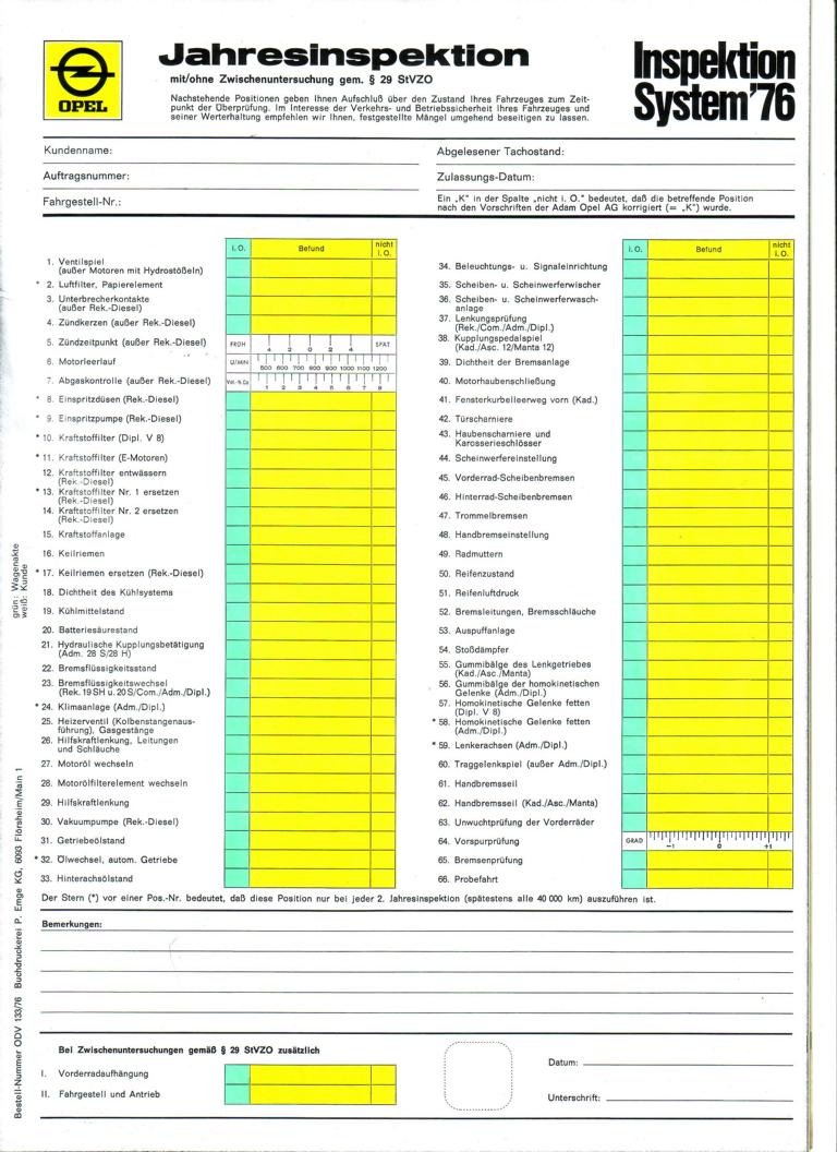 Hier die Inspektionspläne für eine Ordendliche Inspektion