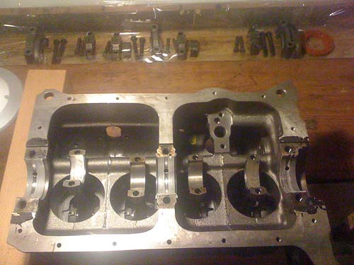 lagerschalen und hauptlagerschalen demontiert und fein säuberlich in reih und glied aufgestellt. natürlich vorher alles markiert und beschriftet etc