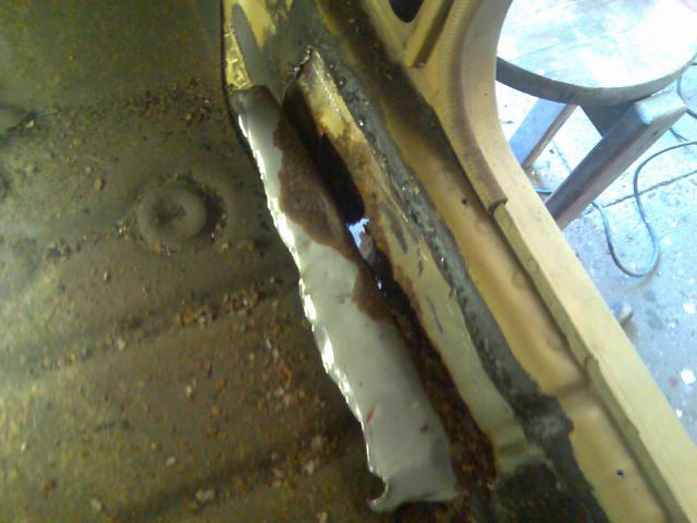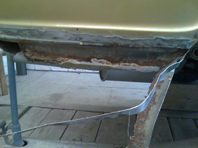 Wie bei rechten Innenschweller war auch hier schon mal fahrzeugtypisch ein wenig unprofessionell ge(schweißt) – flickt worden. Der defekte Außenschweller an der Seite, ließ diesen und den Innenschweller von innen erneut blühen. Also raus damit.