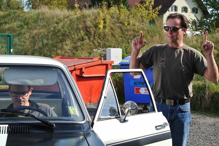 Ich (sich schon freuend), Herr Krause (sich konzentrierend) de Berta (sich nicht startenwollend) und die Abfallcontainer (drohend) smile )