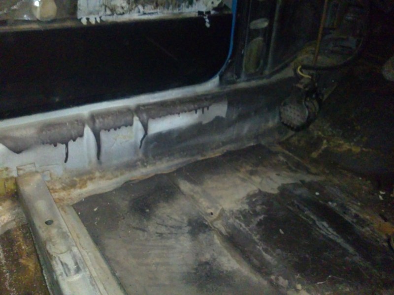Das Batterieblech muss ersetzt werden. Die "Reparatur" war aber interessant: Bauschaum und Spanplatte biggrin