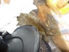 Gestern suppte es (in Fahrtrichtung) aus den Löchern des hinteren Luftfilters und an der Heizungskühlerverkleidung waren viele Stippen- wie aus dem Vergaser geschossen.