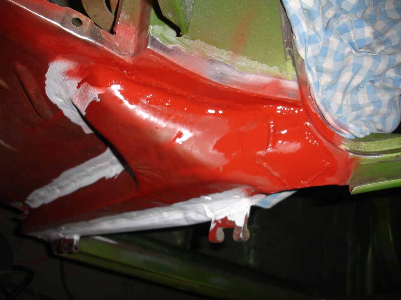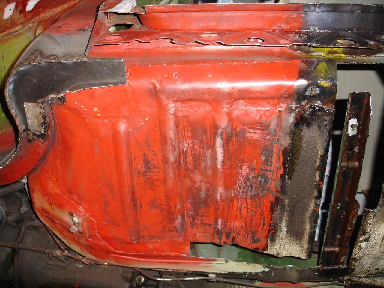 Habe angefangen, die Karosserie meines 4-T?rers "aufzuarbeiten". Substanz ist wirklich gut (Frontmaske gro?teils ohne Rost, Batteriefach top, Reserveradwanne und Tanktr?gerblech ohne Rost, etc...)