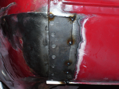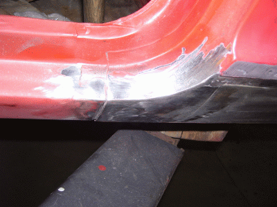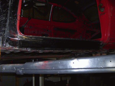 Da der Schweller original zweiteilig ist habe ich mein Rep-blech auch zerschnitten, genau an der Originalen Trennlinie. Der Vordere Teil muß dann mit einem kleinen Blech ca. 1,5 cm verlängert werden.