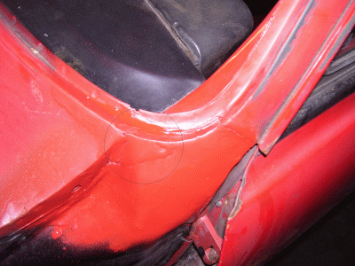 Die A-seulen Bleche passen gar nicht so schlecht. Sind nur an der Ecke zum Windlauf etwas knapp, da muß man dann noch ein kleines Blech einflicken(siehe zarter Kreis auf den Bildern).