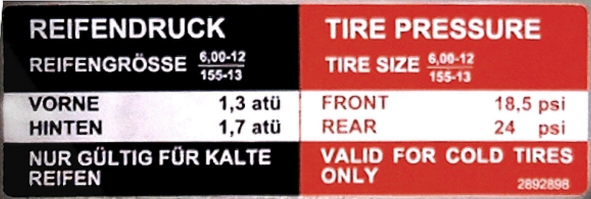 Kadett B Forum » Teilemarkt » Suche Teile/Fahrzeuge » Reifendruck - Aufkleber