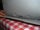 Da bin ich grad bei, die Verstärkung einfach auszubohren, dann mache ich das Blech neu und schweisse die Verstärkung wieder rein.