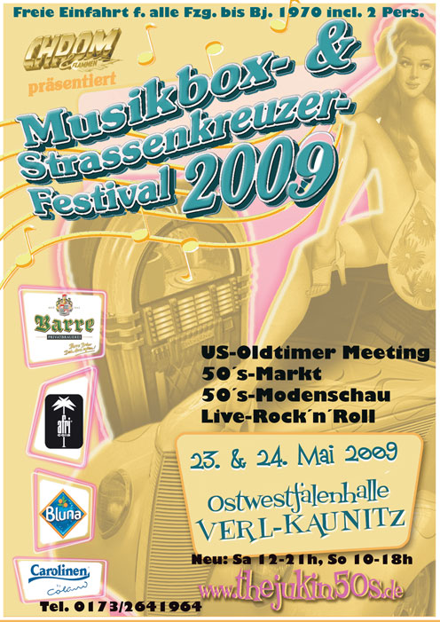 Dieses Wochenede .Musikbox- und Strassenkreuzer-Festival in der Ostwestfalenhalle in 33415 Verl-Kaunitz mit großem Oldtimer-Treffen (alle Fahrzeuge bis Bj. 70 incl. 2 Pers. freie Einfahrt ), Live-Rock´n´Roll mit 2 Bands,