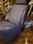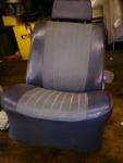 Aha. Zeig' mal bitte ein paar Bilder von der Kopfstütze und den Beschlägen. Ich vermute, daß da ein Vorbesitzer, möglicherweise der Erstbesitzer, die originalen Sitze hat größer aufpolstern lassen. Die Kunstleder-Bahn in der Mitte ist mit 8 Pfeifen etwas schmaler als im Original mit 10 Pfeifen, also wohl einfach ausgeschnitten und mit neuem Uni-Kunstleder eingefasst. Ich sah so etwas schon mal, aber in sehr dilettantischer Ausführung... Ist das blau oder schwarz? Wie sitzt es sich denn so darauf?