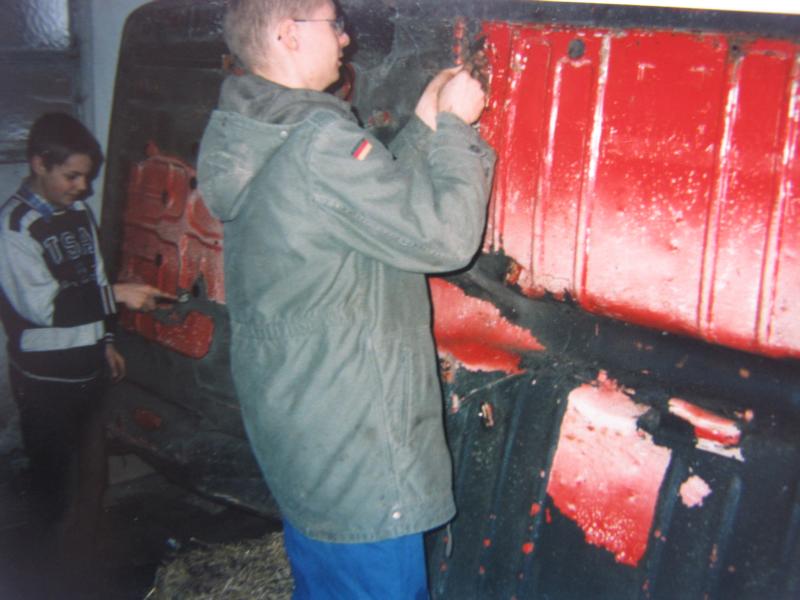 es mussten kotflügelaufnahmen li und re,schweller teilweise(sa nicht so schlimm aus wie auf den bilder die wo noch kommen da ich beim rausschneiden grösszügig war) beide asäulen verkleidung,endblech,re endspitze,teile vom innenschweller,re radlauf hinten mit schwelleransatz und paar kleine flickbleche