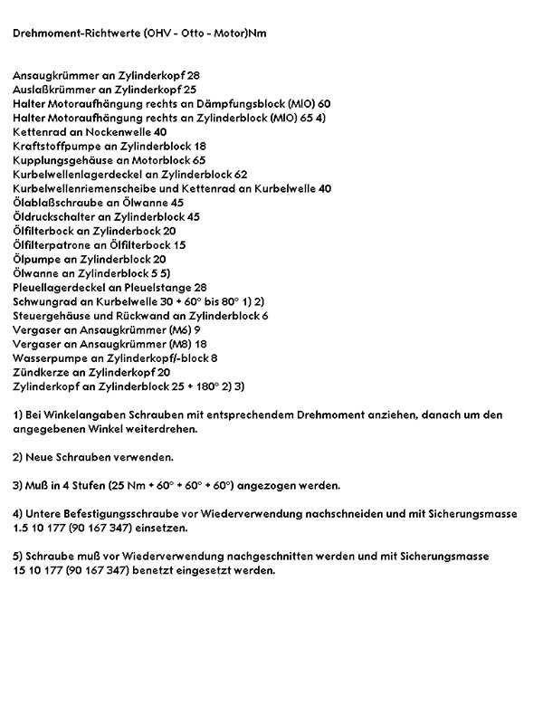 Alle Dichtungen, Dehnschrauben (Pleuelschrauben, Hauptlagerschrauben und Kopfschrauben), selbstsichernde Muttern (z.B. für Kipphebel).