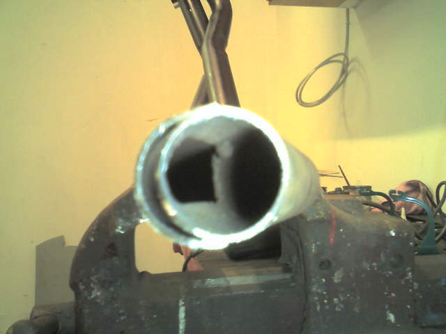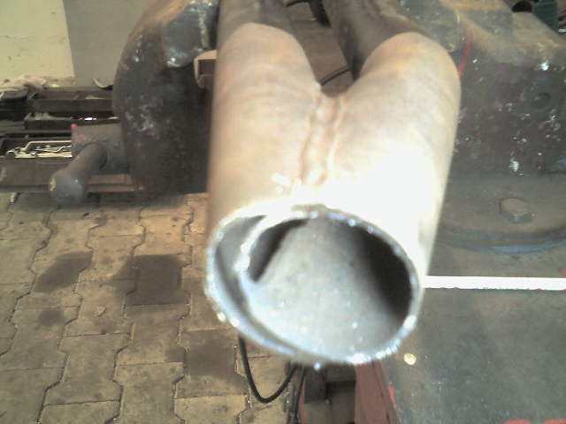 Achtet mal, wie eng das Hosenrohr im Orginal ist. Ich habs dann direkt geweitet. Da wo die Rohre aufeinander treffen.
