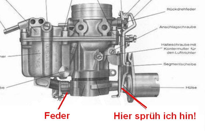 Ansonsten würde ich die Leerlaufdüse rausdrehen und mal kräftig mit Druckluft durchblasen meistens ist die verstopft. Wenn er vorher gut gelaufen ist würde ich an den Einstellungen nichts ändern (leerlaufgemischregulierschraube und Leerlaufgemischschraube, Drosselklappenanschlagschraube etc.)! Wenn er gut lief ist auch die Zündung wahrscheinlich nicht die Ursache aber die Kontakt prüfen und den Zündzeitpunkt sowie die Zündanlage sprich Verteilerkappe, Rotor und Kabel ist sicher nie falsch.