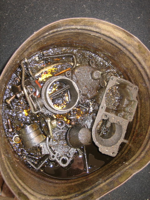 Seit Tagen ärgert mich der Kadett mit unrundem Motorlauf im Teillastbetrieb. Beim "crusisen" zwischen 70 und 90 buckelt der Motor ab und an. Erster Gedanke: Falschluft oder verstopfte Düsen, also erstmal den Vergaser reinigen, und was sehe ich da...hier fehlt doch irgend wie etwas? (Bild 1) Das schlaue Buch verrät mir, daß es sich um die Lufttrichterhalteschraube handelt. Dank der sauber beschriften und ordentlich verpackten Ersatzteilsammlung vom Vorbesitzer (Bild 2) biggrin hatte ich sofort Ersatz zur Hand, und auch gleich eingebaut (Bild 3).