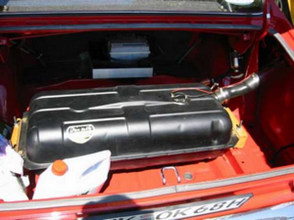 Der 68-Liter-Tank für den Rallye wird mitten im Kofferraum eingebaut und macht ihn damit nahezu unbrauchbar. Das ist eher etwas für Sportfahrer, aber kaum für den täglichen Gebrauch.