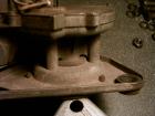 Noch eins von der Dichtung des alten Motors, die mit Nippeln in Löchern der Dreiecksplatte befestigt ist :