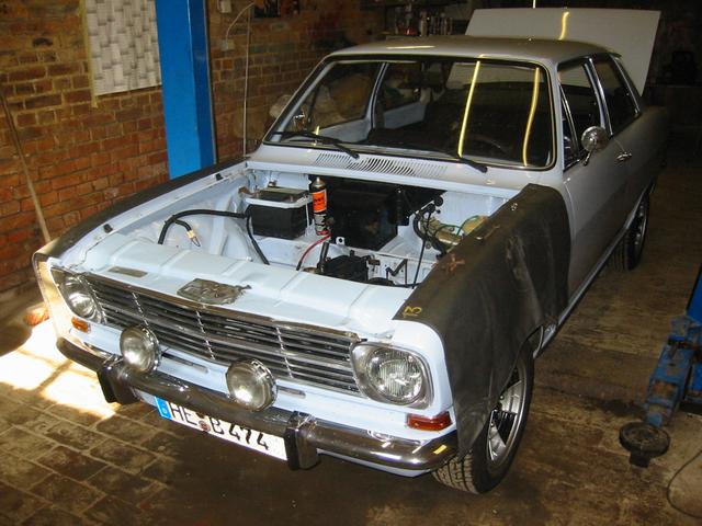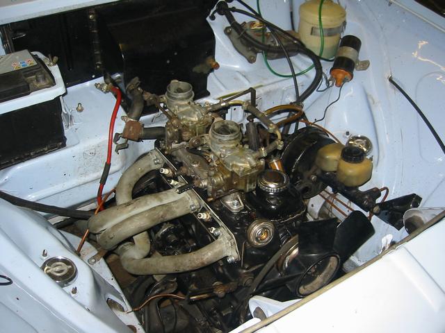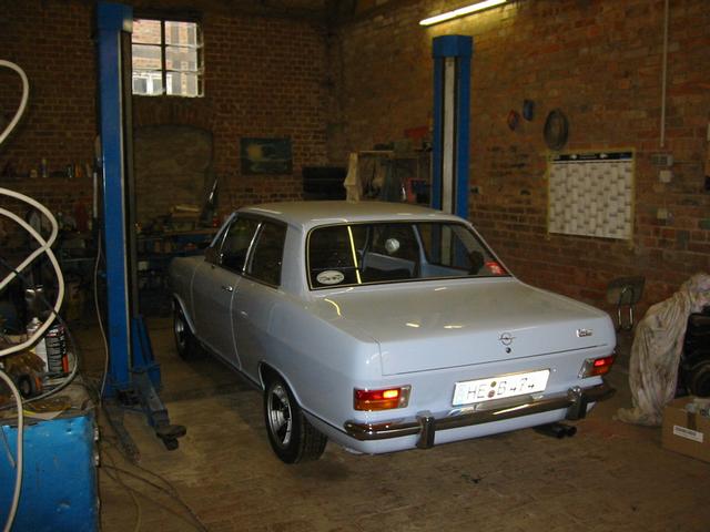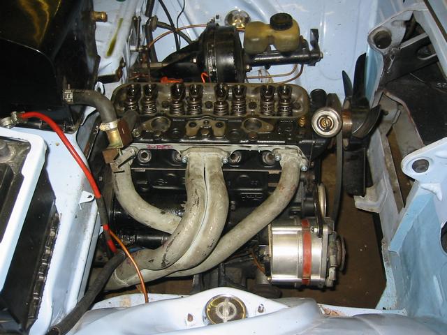Kern der ganzen Aktion waren ein Fächerkrümmer und ein bearbeiteter Zylinderkopf. Der Fächerkrümmer diente auch als Vorlage für den demnächst von reprotec erhältlichen Edelstahl-Fächer. Die Herkunft ist bekannt. Die Wirksamkeit wurde von Steffen alias "ohv" geprüft und für gut befunden. Ich bin sicher, daß das demnächst zu erwerbende Exemplar noch etwas besser sein dürfte. Das Original war für eine Sidepipeanlage ausgelegt, was mir beim Anpassen an die 12S Auspuffanlage etwas Schwierigkeiten gemacht hat. Ich wollte das Original aber auch nicht verändern. Der Zylinderkopf stammt von einem 12S B-Kadett Motor und hat jetzt 36er Einlassventile, 29er Auslässe vom Corsa und entsprechend bearbeitete Kanäle. Die Einlassöffnungen im Kopf wurden von mir auf 33mm erweitert. Das entspricht dem Maß der damals erhältlichen größeren Dichtungen von Irmscher. Weiterhin habe ich andere Ventilfedern verbaut. Weiter geht es mit einer Riemenscheibe aus Aluminium sowie einer auf 4,7kg erleichterten Schwungscheibe (Serie 7kg). Als Nockenwelle kam ein Exemplar mit 300Grad Offnungswinkel aus meinem Fundus zum Einsatz. Der Block ist leider nur ein 12N, da mir momentan kein brauchbarer 12S zur Verfügung stand. Befeuert wird das Ganze momentan von einer SR-Anlage. Diverse Brücken + 40er Weber oder Solex liegen zwar auch noch hier rum aber bei der SR Anlage weiß ich erstmal, daß sie läuft.