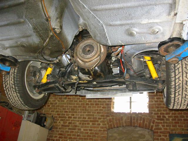 Auf Bild 2 die Getriebestütze, die ich mit zwei Auspuffgummies frisiert habe. Wer sie auf dem Bild findet, ist ein Held. Das miese Gewackel des Schalthebels war nervig. In Kombination mit den modifizierten Motorhaltern ist das Ganze jetzt schön stramm. Die Kombination ist übrigens über mehrere Jahre rallyemäßig erprobt und bewährt.