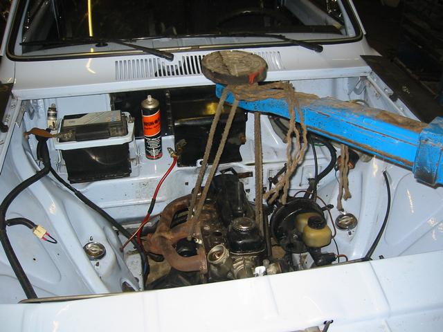 praktisch so eine Hebebühne wenn man keinen Motorheber hat. Das Ganze in dieser Art bitte nur mit Hanfseil ...
