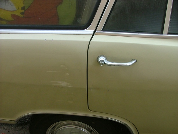 Das Auto wurde mal lackiert, der Lackzustand ist aber nicht mehr der allerbeste, hier und da ist mal ein Kratzer und ne Beule...
