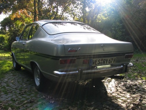 Ein unrestaurierter 67er Rallye-Kadett, leider unfallbedingt nicht mehr komplett im ersten Lack. Auf der Heckansicht sieht man sehr schön den Unterschied im Glanzgrad zwischen den Karosseriepartien Seitenwand/Kofferraumdeckel (noch ohne Nachlackierung) und dem Dach, das der Vorbesitzer mal nachlackieren ließ. Schade, aber es erzählt vom ereignisreichen Leben des Rallye. Ebenso wie die ins Heckblech implantierte Nebelschlußleuchte, die ohne Blecharbeiten (und damit ohne Nachlackieren) nicht beseitigt werden kann. Muß aber auch nicht. Dieses Merkmal trägt die Handschrift des Vorbesitzers genau so deutlich wie der im 70er-Jahre-Stil aufgepeppte Innenraum. Das lasse ich so, das verströmt den Zeitgeist jener Jahre, als diese Rallye-Kadetten noch jungen Fahrern zum Angeben dienten und gnadenlos umgebaut und verheizt wurden. Der hier hat es überlebt und bleibt wie er ist. Durch eine Rückführung in den Werksauslieferungszustand würde man das alles unwiederbringlich entfernen. In meinen Augen wäre das ein Frevel !!!