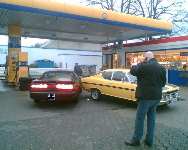 Als ich rückwärts an die Zapfe fahren wollte übersah ich eine eiligen Zeitgenossen, der sich eben noch vorbeiquetschen wollte.