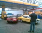 Er hat mich um 15:30 zu Hause abgeholt. Auf dem Weg zur Autobahn eben noch tanken.