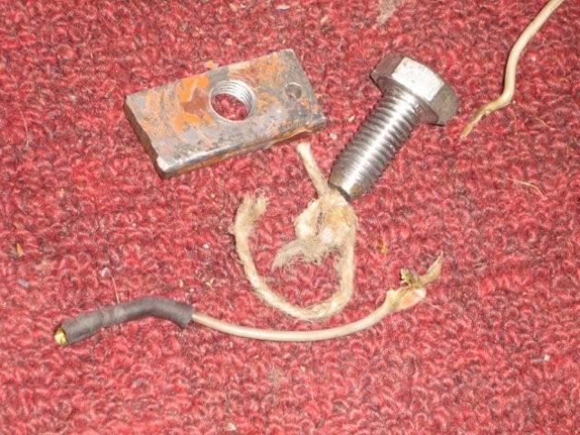 es kann sein das die gurte nachträglich eingebaut worden sind, solche die man im teilehandel kaufen konnte. viele fzg hatten noch keine befestigungen serienmäßig. es musste ein loch gebohrt werden. um die mutter hinten festzuhalten waren bei den gurten flachstähle dabei mit gewinden drin. um diesen flachstahl zu platzieren war an diesem ein etwas dickerer draht. mit diesem draht ist dann der flachstahl gehalten worden, bis die schraube angesetzt war.