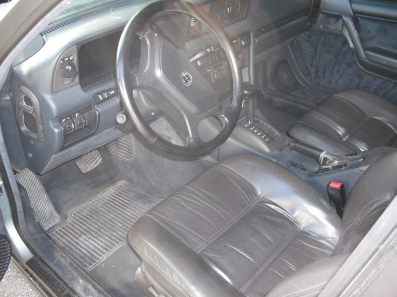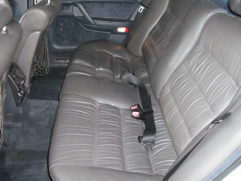 Lederausstattung aus Schlachtfahrzeug nachgerüstet (nur Sitze/Rückbank), auf Wunsch (bzw. als Preisargument) kann aber wieder die originale Stoffausstattung eingebaut werden.