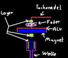 Unten an der Achse , an der die Feder und der Zeiger h?ngen ist eine Art Dose aus Aluminium.