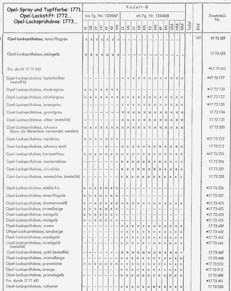 Ein Freund für mich suche die Farb und Polster kombinationen vom Kadett B... leider gibt's nicht mehr ins Arkiv. Hat jemand noch die Daten/Karten?