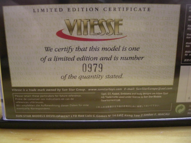 Mein Vitesse Rallye F Coupe ist Rot hat ein anderes Nummernschild, und ist noch in der Viereckigen Vitrine, und nicht in der Rechteckigen.