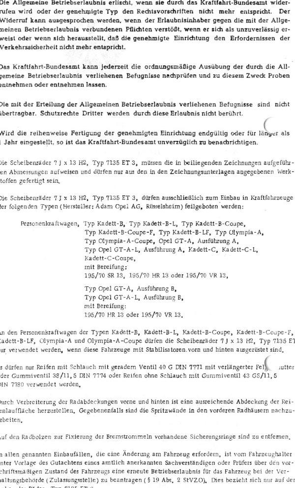 Es gibt für den Kadett B kein Gutachten für eine ATS ET03.