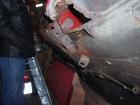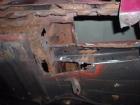 Aber dafür rundherum teilweise dilletantisch ersetzte Blechteile. Radhaus vorne rechts schon 1969 ersetzt, Radlaüfe hinten, Seitenwand hinten links, Riss über dem Tunnel an der Schritzwand ! Mal sehen, was zum Vorschein kommt, wenn ich da weitermache?