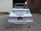 Der Wagen ist nun komplett nackt und auf ein Gestell gesetzt.
