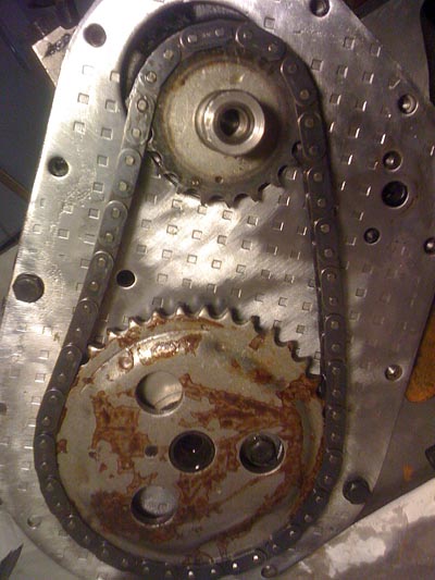 steuerkette dran. die "neuen" ritzel sind echt ganz schön angegammelt ...unverschämt sowas als neuware zu verkaufen