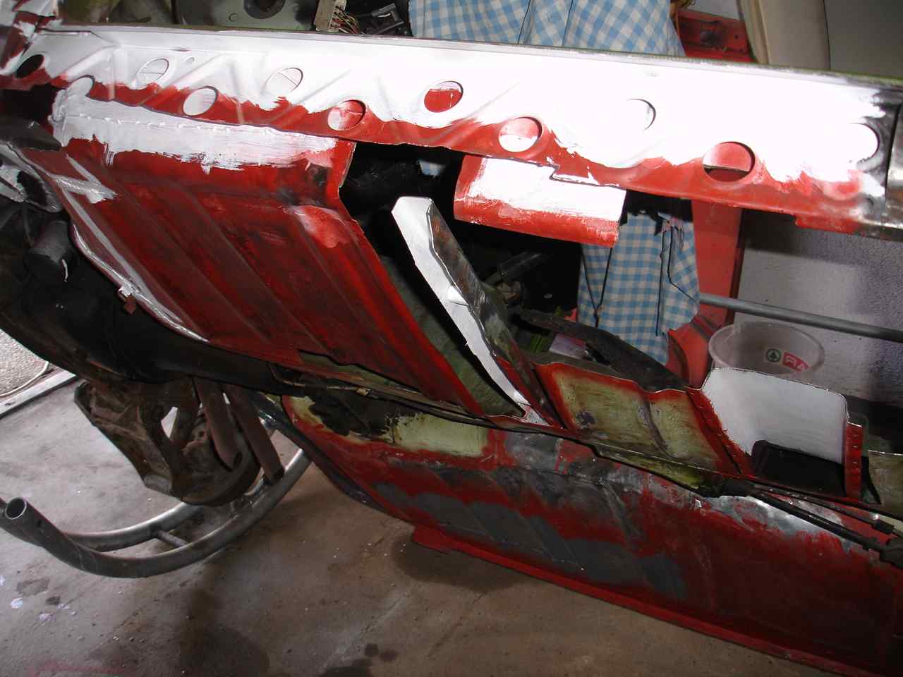 Jetzt mache ich den Boden (innen und aussen) sowie den Motorraum und die Radeinbaubereiche fertig, inkl. lacken, dann die Vorderachse wieder rein und dann gehts zu Lacker. Sollte Ende n?chster Woche soweit sein?